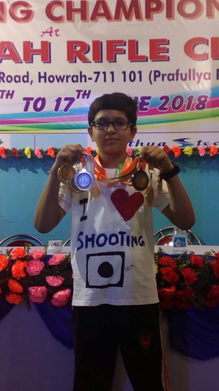 DEEHKOONZE SETHI, is 10 yrs old and already showing signs to be a future crack-shot. He won a whopping 6 medals at West Bengal Open in June 2018, winning Gold in Senior , Junior & Youth Category. Category : 10m air